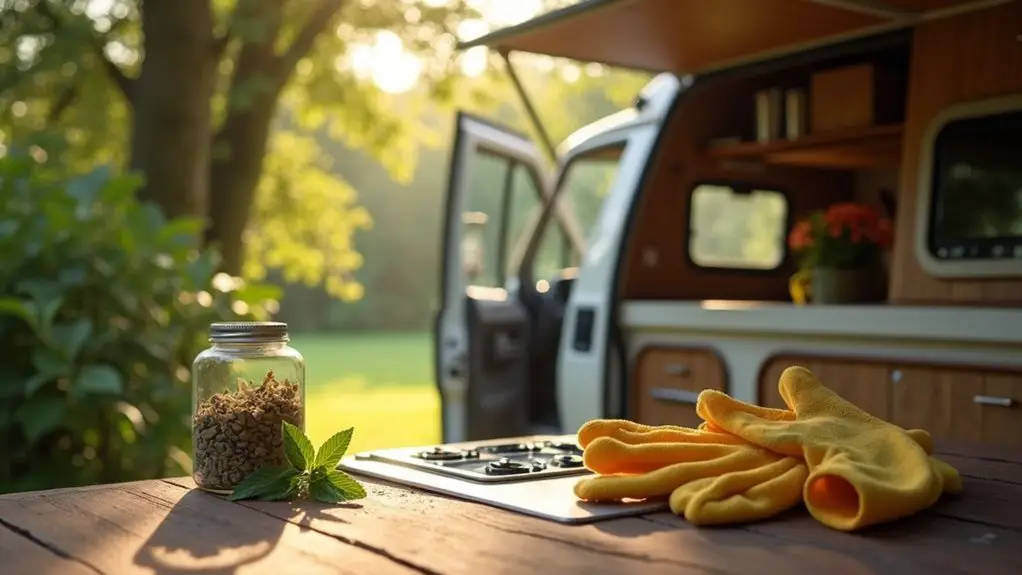 Crack a roof vent slightly so air flows. Toss desiccant bags in every cabinet and corner. Vacuum every crumb, clean out all food, and empty cabinets. Crawl under and look for entry holes. Stuff them with steel wool, foam spray, or mesh screens. Throw in peppermint oil or rodent repellent packs. Do they work 100%? No. But it sure beats giving a mouse a free condo.